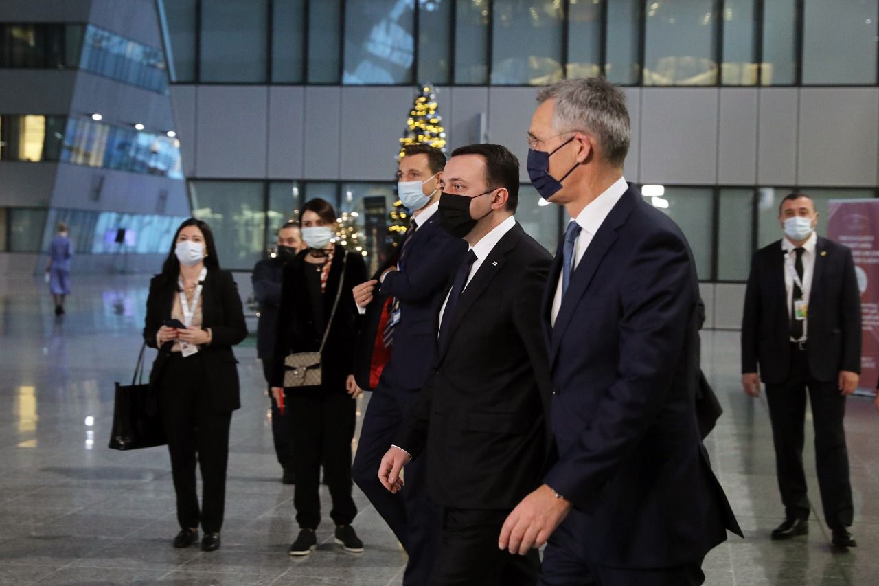 NATO-ს გენერალურმა მდივანმა იენს სტოლტენბერგმა საქართველოს პრემიერ-მინისტრ ირაკლი ღარიბაშვილს NATO-ს შტაბ-ბინაში უმასპინძლა. NATO-ს პრესსამსახურის ცნობით, მხარეებმა განიხილეს პოლიტიკური და პრაქტიკული თანამშრომლობა, ასევე რეგიონში უსაფრთხოების ვითარება. გენერალურმა მდივანმა კიდევ ერთხელ დაადასტურა NATO-ს მტკიცე პოლიტიკური და პრაქტიკული მხარდაჭერა მისი პარტნიორების მიმართ და კიდევ ერთხელ დაადასტურა მოკავშირეების მტკიცე მხარდაჭერა საქართველოს სუვერენიტეტისა და ტერიტორიული მთლიანობის მიმართ. გენერალურმა მდივანმა ხაზი გაუსვა, რომ საქართველო NATO-ს ერთ-ერთი უახლოესი პარტნიორია და მადლობა გადაუხადა საქართველოს ავღანეთში NATO-ს ძალისხმევაში წვლილისთვის წლების განმავლობაში. გენერალურმა მდივანმა ისაუბრა რეგიონში უსაფრთხოების ვითარებაზე, მათ შორის რუსეთის სამხედრო ძალების გაძლიერებაზე უკრაინაში და მის გარშემო და მის დესტაბილიზაციის გამომწვევ ქმედებებზე შავი ზღვის რეგიონში. გენერალურმა მდივანმა ხაზგასმით აღნიშნა, რომ „ნებისმიერი მომავალი რუსული აგრესია ძვირი დაუჯდება რუსეთს და სერიოზული პოლიტიკური და ეკონომიკური შედეგები მოჰყვება მისთვის. ორმა ლიდერმა ასევე ისაუბრა საქართველოს შიდა რეფორმებზე და წლიური ეროვნული პროგრამის განხორციელებაზე. გენერალურმა მდივანმა ხაზგასმით აღნიშნა, რომ „სასიცოცხლოდ მნიშვნელოვანია სასამართლო სისტემის რეფორმაზე, მედიის თავისუფლებასა და უსაფრთხოების სექტორის ანგარიშვალდებულებაზე მუშაობა გაგრძელდეს“.