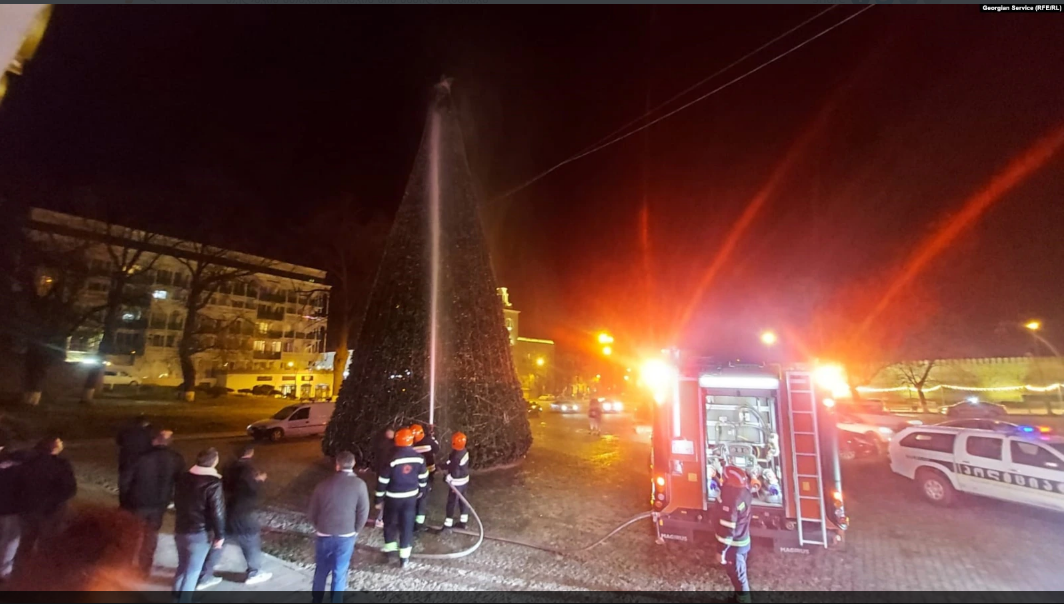თელავის მთავარი ნაძვის ხის ნაწილი დაიწვა