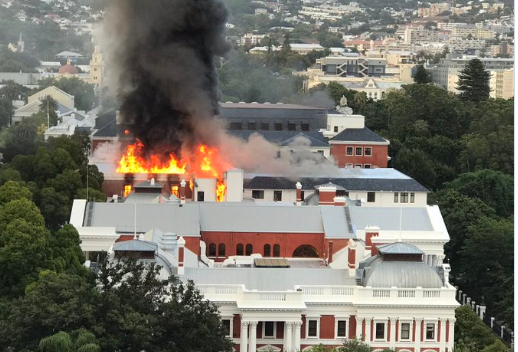 სამხრეთ აფრიკის ქალაქ კეიპტაუნში პარლამენტის შენობაში დიდი ხანძარი მძვინვარებს. ვიდეოკადრებში შავი კვამლი და უზარმაზარი ალი ჩანს, რომელოიც შენობის სახურავიდან გამოდის. ადგილზე ათობით მეხანძრე მუშაობს, რომლებიც ხანძარს ებრძვიან; ჯერჯერობით უცნობია, რამ გამოიწვია ხანძარი.